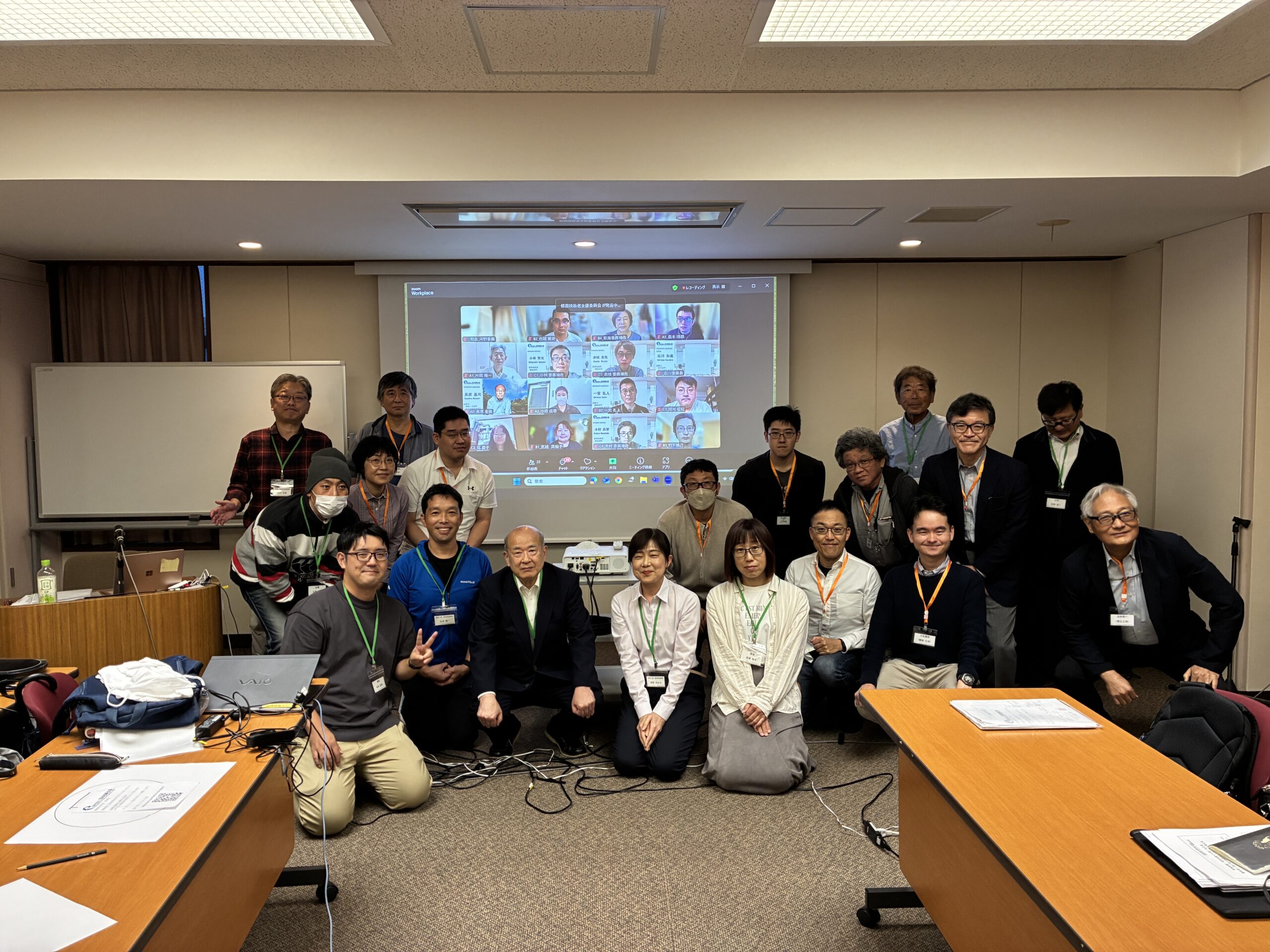 会場参加者と、スクリーンに映るオンライン参加者を合わせて集合写真を撮影しました。