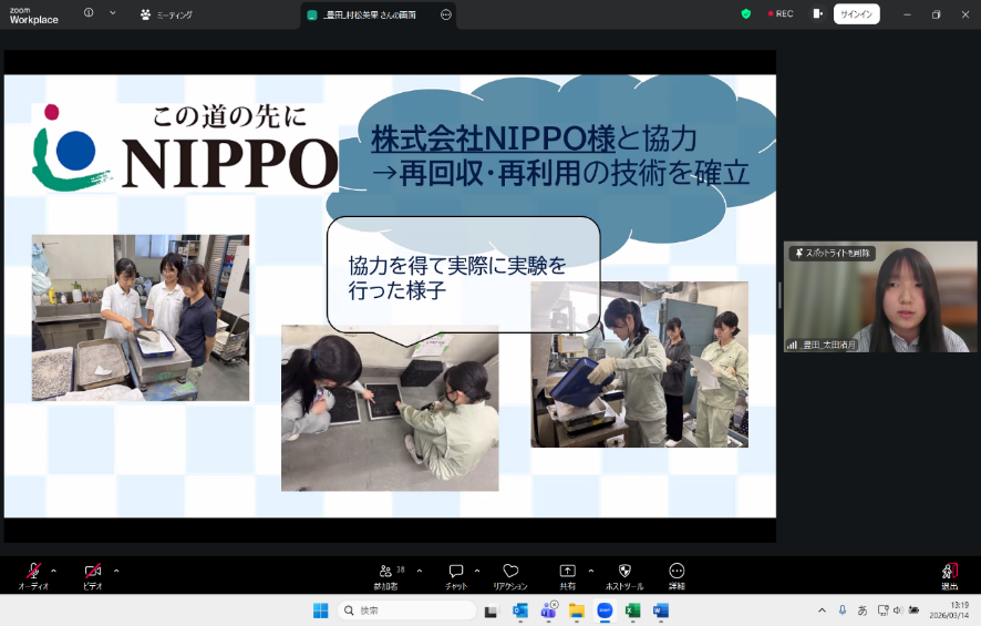 まずは、豊田高専・岐阜高専チームより「廃タイル再生資材の舗装利用について」のタイトルで発表をしていただきました。