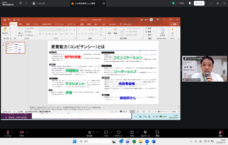 リーダーシップ、コミュニケーションなど)、技術士試験に向けた勉強方法など、